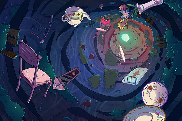 Question - How does a girl plummeting down a rabbit hole into chaos come out unchanged?